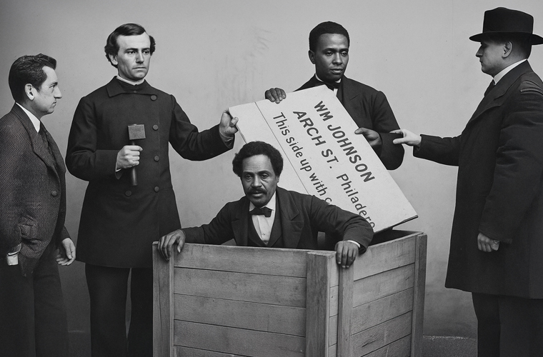 With the aid of two men named Smith—one a sympathetic white shoemaker and the other a free Black man—Brown devised a daring plan. He enlisted the services of the Adams Express Company, a private shipping firm, to transport him to freedom. His destination was the Philadelphia Anti-Slavery Society, a hub of abolitionist activity where allies awaited his arrival. On March 23, 1849, Brown, fortified by his deep Christian faith and equipped with only a small bladder of water, a few biscuits, and a gimlet to bore air holes, squeezed his 5-foot-8, 200-pound frame into a wooden crate measuring just 3 feet long, 2 feet 8 inches deep, and 2 feet wide. Labeled as “dry goods,” the box was nailed shut, with Brown curled inside, enduring a suffocating, claustrophobic ordeal. For 27 grueling hours, he was jostled, flipped upside down, and nearly suffocated, surviving on sheer willpower and the faint hope of liberty. When the crate finally reached Philadelphia, abolitionists pried it open to find a sweat-soaked Brown, battered but alive. Emerging from his wooden prison, he reportedly greeted his rescuers with a triumphant, “How do you do, Gentlemen?” Overwhelmed with gratitude, he burst into a psalm of praise, earning the moniker Henry “Box” Brown from his awestruck liberators.